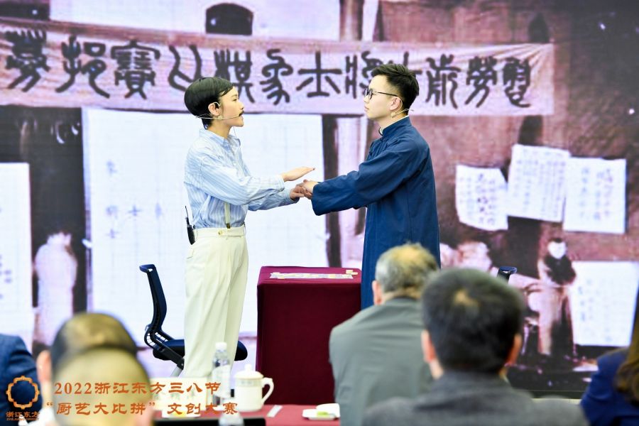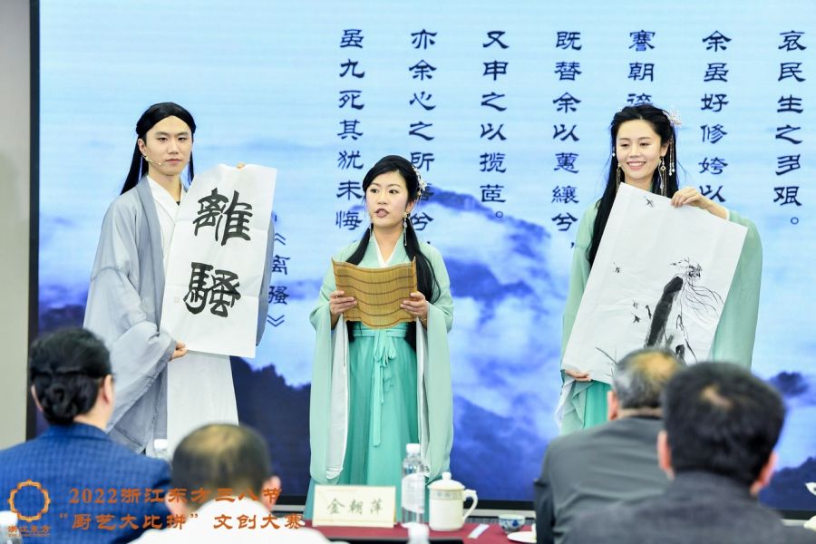 為迎接三八國(guó)際勞動(dòng)?jì)D女節(jié),浙江東方舉辦老菜新做“廚藝大比拼”文化創(chuàng)意大賽,全程同步直播,展示了中華民族歷代愛(ài)國(guó)人士家鄉(xiāng)特色菜肴,講述菜品背后歷史文化,演繹愛(ài)黨愛(ài)國(guó)傳奇故事,弘揚(yáng)民族精神。公司黨委書(shū)記、董事長(zhǎng)金朝萍,黨委副書(shū)記、董事陳鑫云,工會(huì)主席裘高堯出席本次活動(dòng)?;顒?dòng)邀請(qǐng)省國(guó)貿(mào)集團(tuán)綜合監(jiān)督部(黨委巡察辦公室)及女工委主任張進(jìn)智,工會(huì)副主席、工會(huì)辦公室副主任孫森偉及浙金信托、大地期貨工會(huì)相關(guān)負(fù)責(zé)人擔(dān)任比賽評(píng)委。
